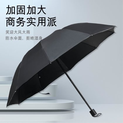 | nameOriginal | Ten-bone black glue solid color simple business style dual-use umbrella manual tri-fold umbrella |