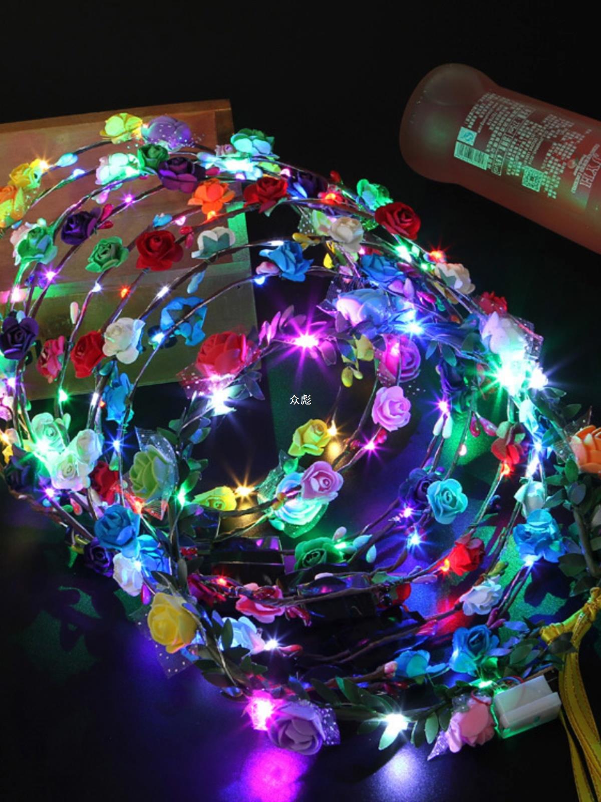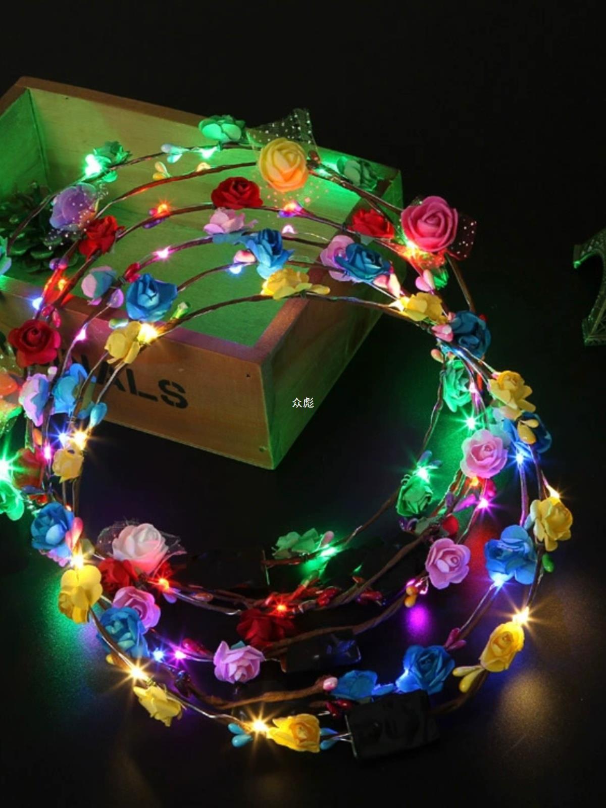 | nameOriginal | Ten lights ten flowers flash glowing wreath headdress headband led lights night market square stall selling small toys for children |