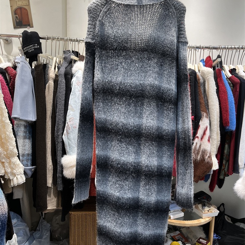 | nameOriginal | Ten or three popular gradient striped high-end cardigan skirt sweater suit long v-neck single-breasted fashion knitted |