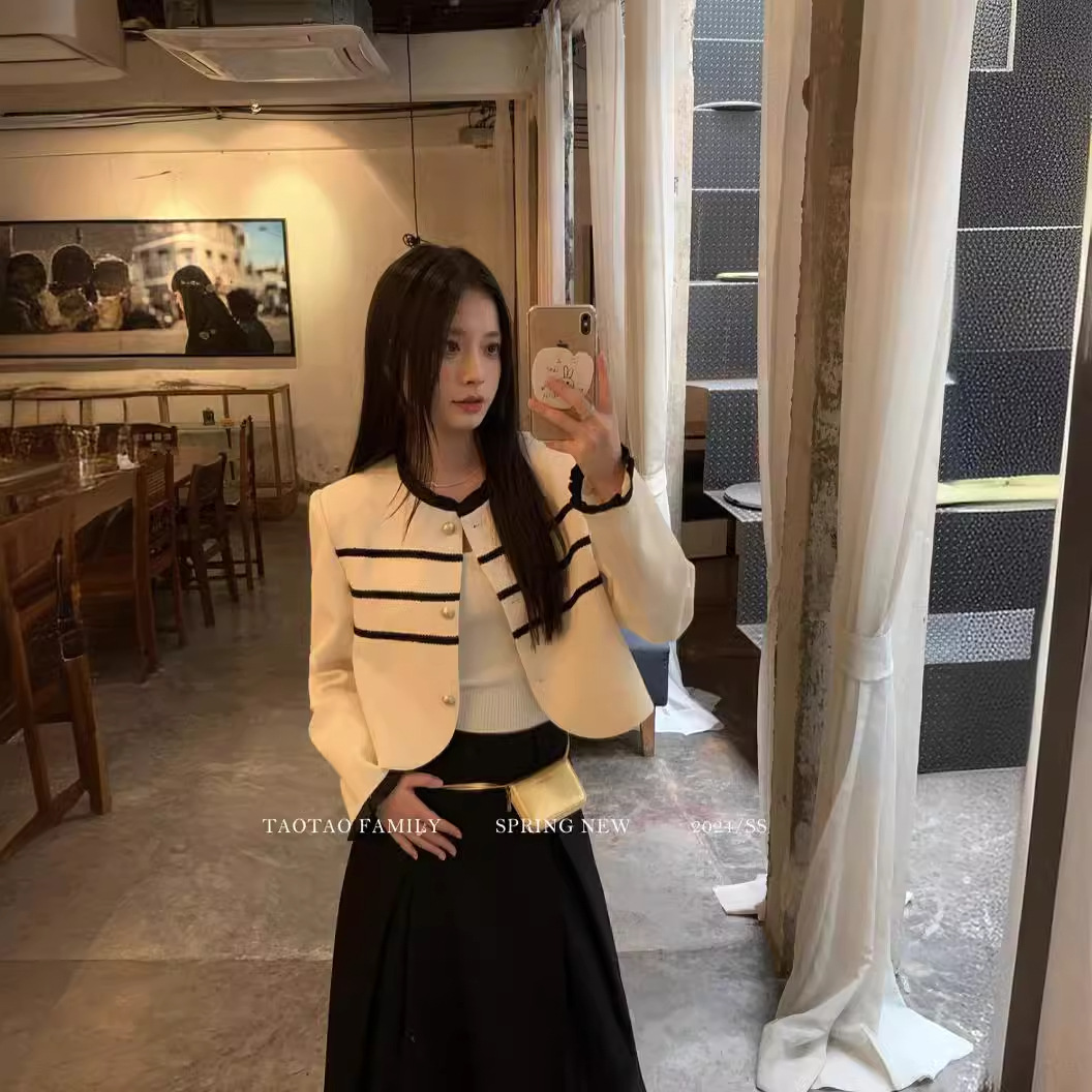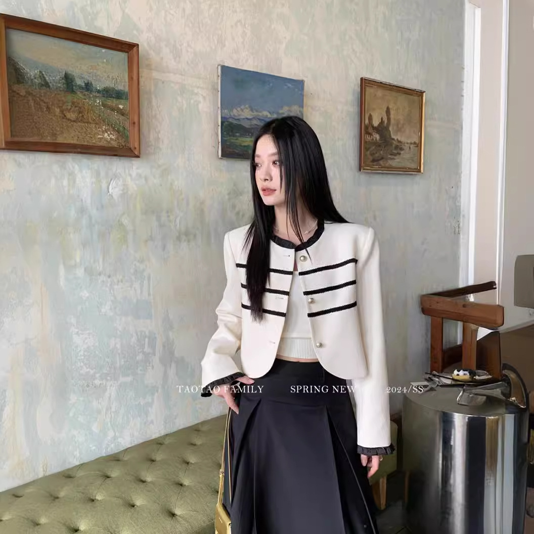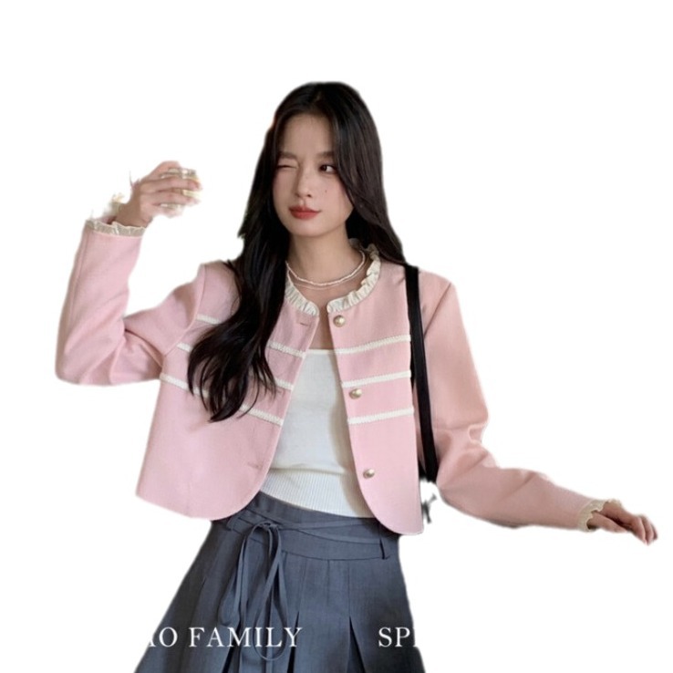| nameOriginal | Ten three lines peach home Chanel style square collar short coat women's long sleeve short straight small top age reducing 089 |