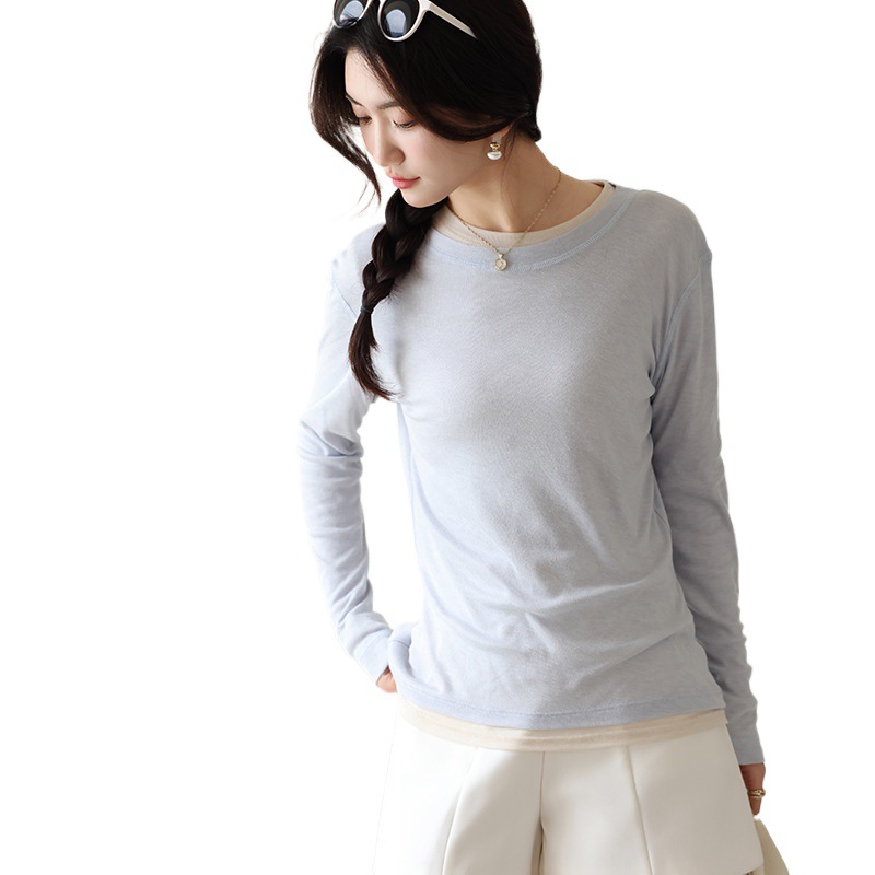 | nameOriginal | Tencel Acetate Lyocell Base Shirt Women's Spring and Summer Inner Crewneck Blouse Long-sleeved T-shirt Micro-transparent Outer Wear Knitwear |