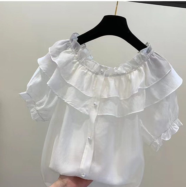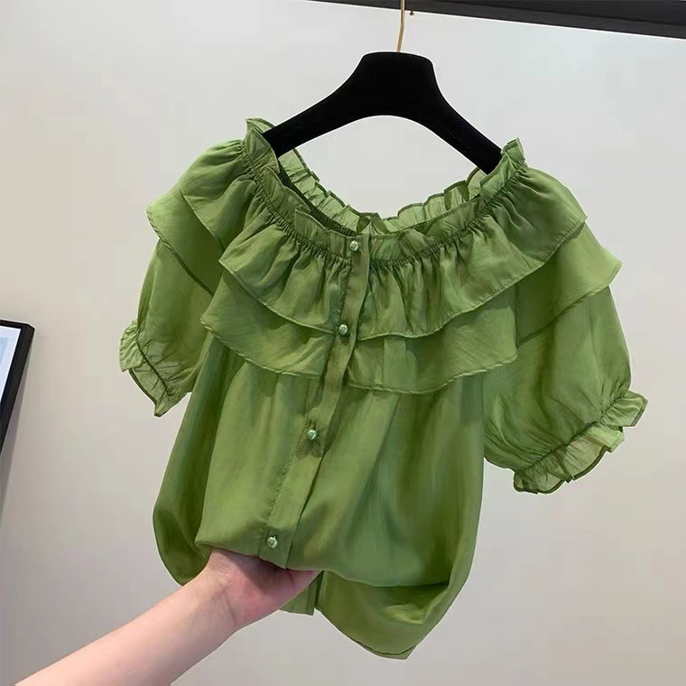 | nameOriginal | Tencel Chiffon Shirt Women's 2024 Summer New Ruffled Slim Look Beautiful Shirt Chic Shoulder Top |