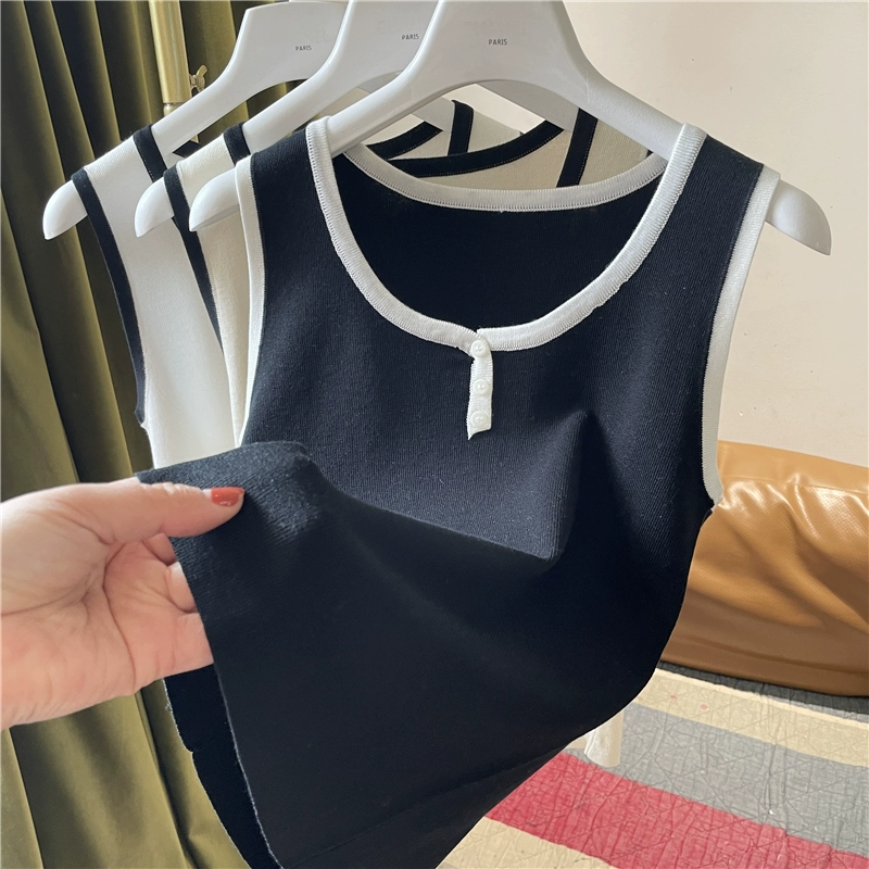 | nameOriginal | Tencel contrast button round neck slim knitted small suspender belt |