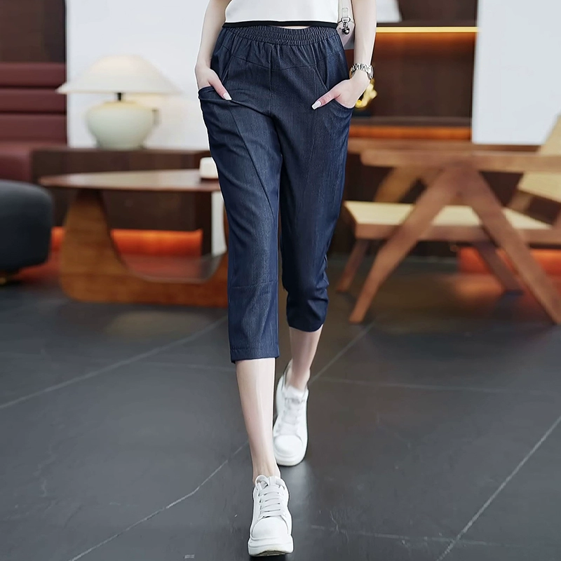 | nameOriginal | Tencel dark blue thin high waisted casual jeans |