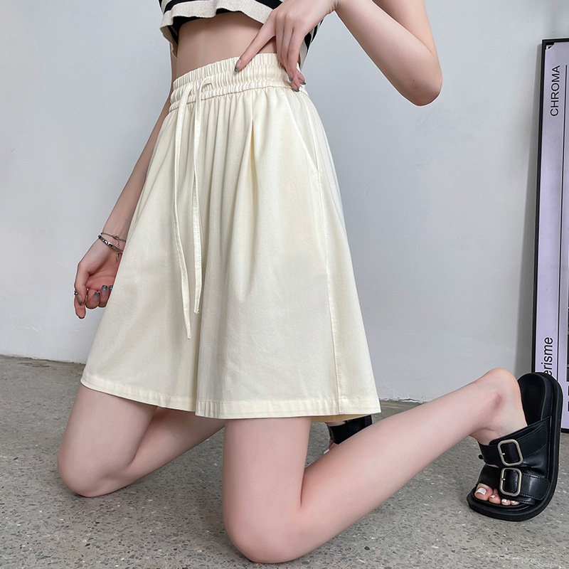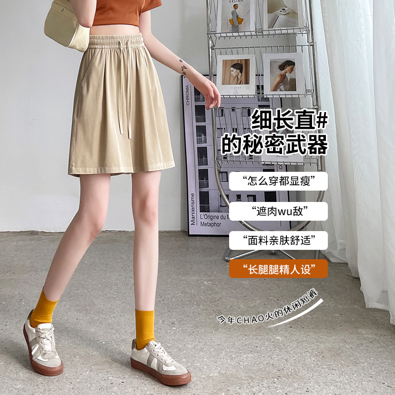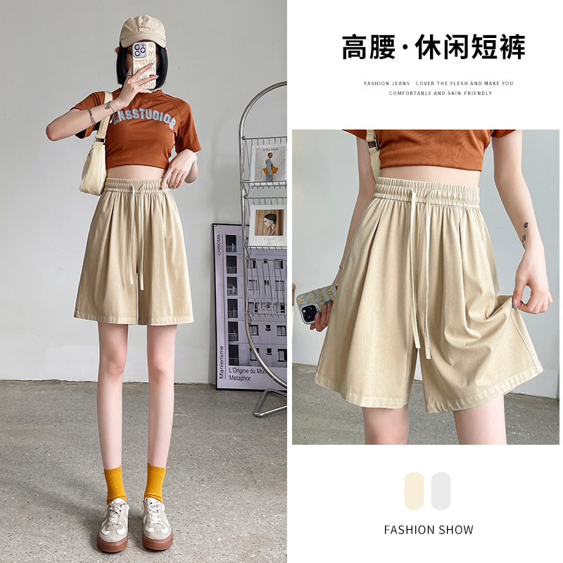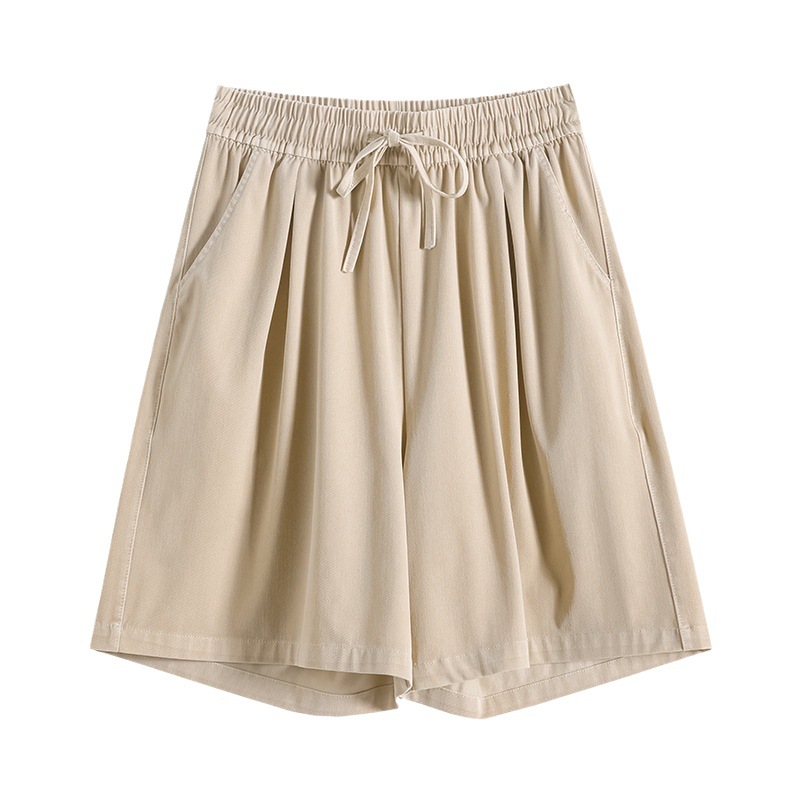 Tencel Denim shorts women's summer thin high waist loose straight A- line slimming elastic waist wide leg shorts