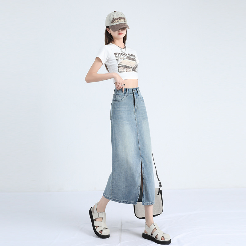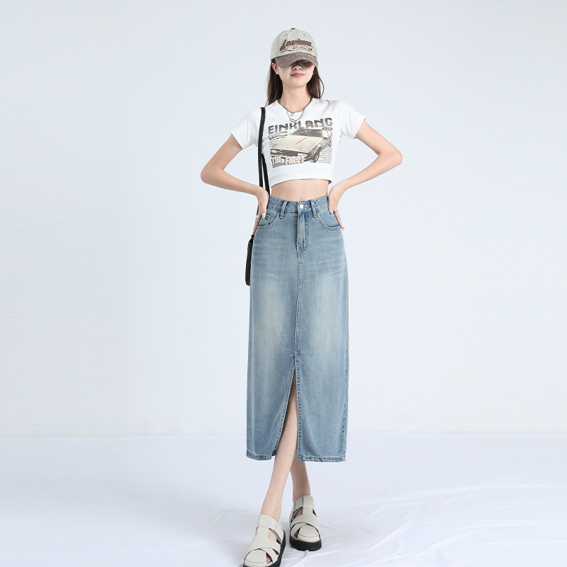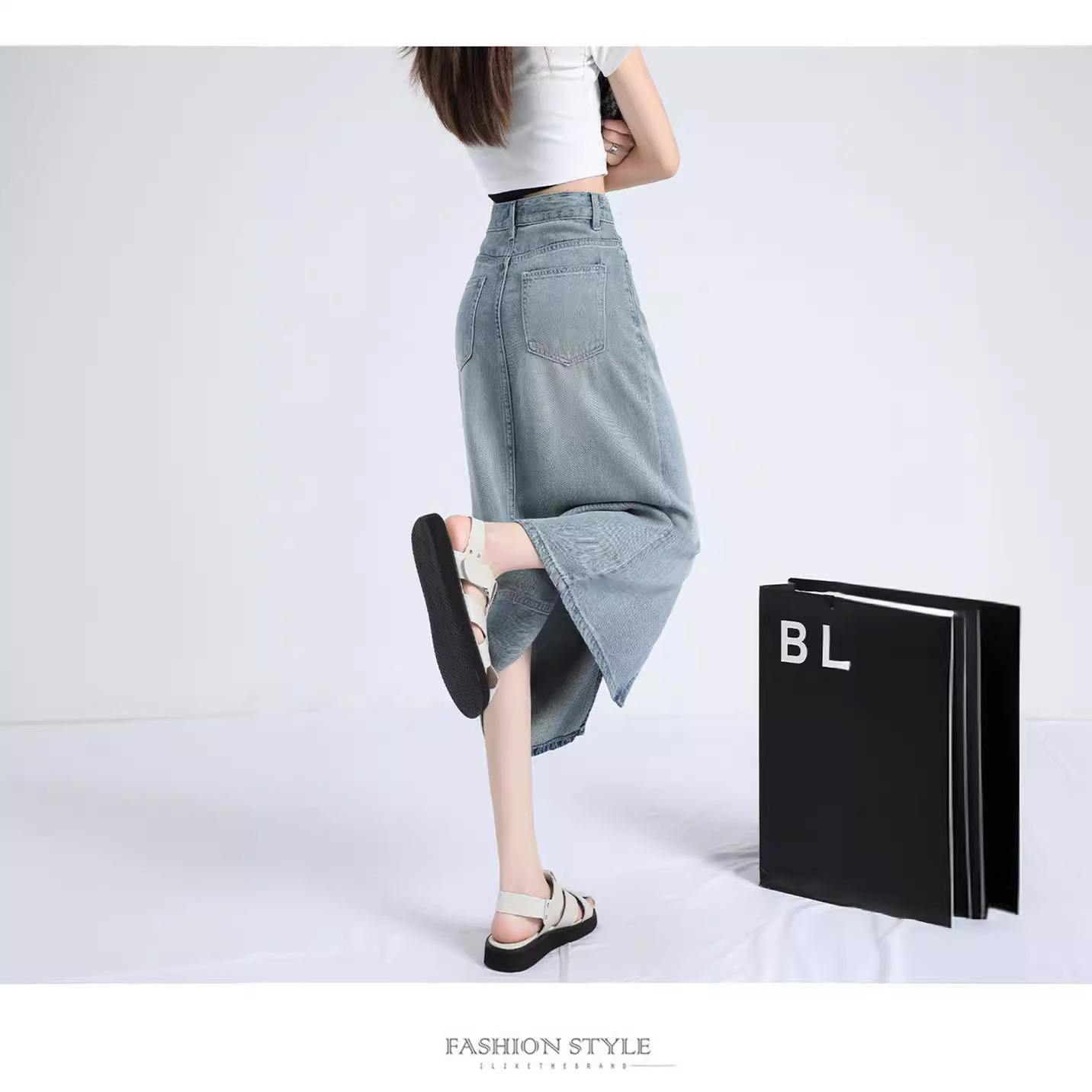 | nameOriginal | Tencel Denim Skirt Women's Summer Thin High Waist Loose Split Ice Silk A- Line Mid-Length Hip Skirt |