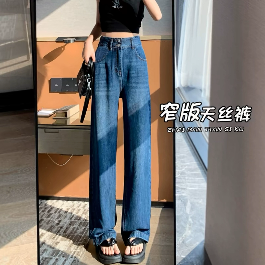 Tencel draped wide-leg summer high-waisted straight jeans