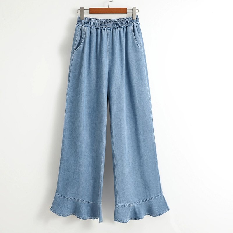 Tencel fat mm elastic waist nine-point jeans