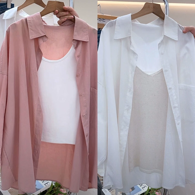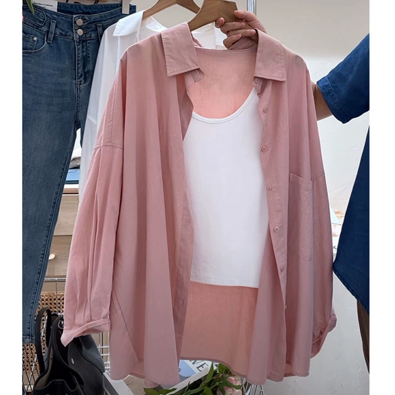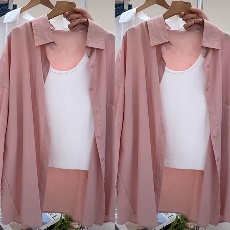 Tencel French cotton plus size long-sleeved sun protection shirt