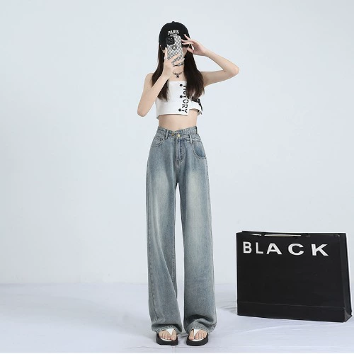 Tiansi high -waisted wide -leg denim jeans female summer thin model 2025 new loose, thin, straight straight vertical mopped pants