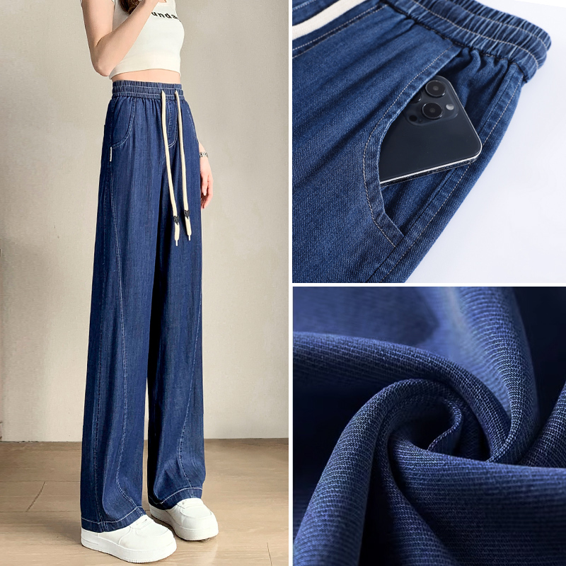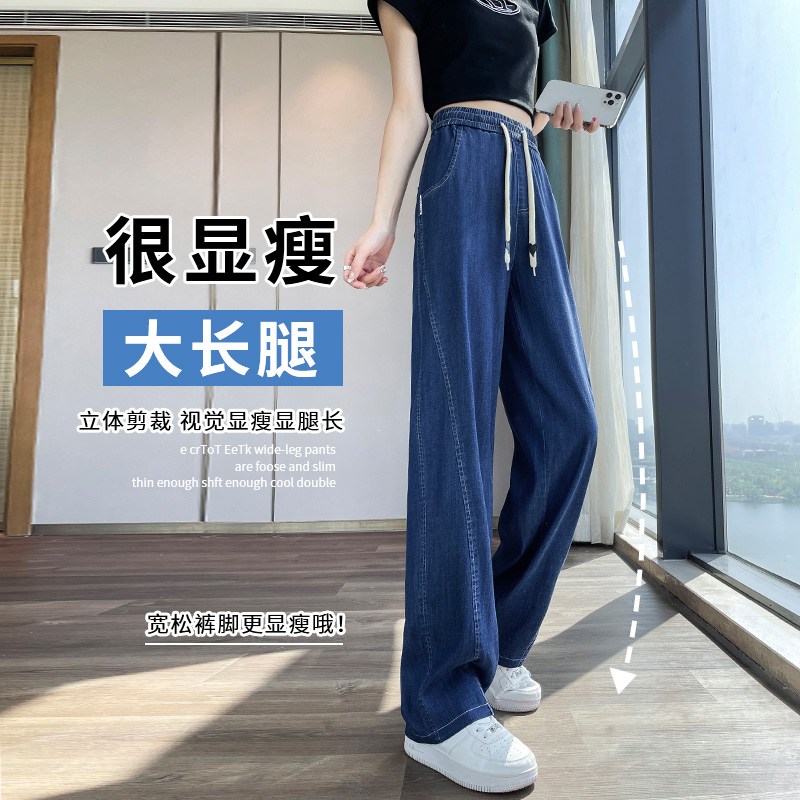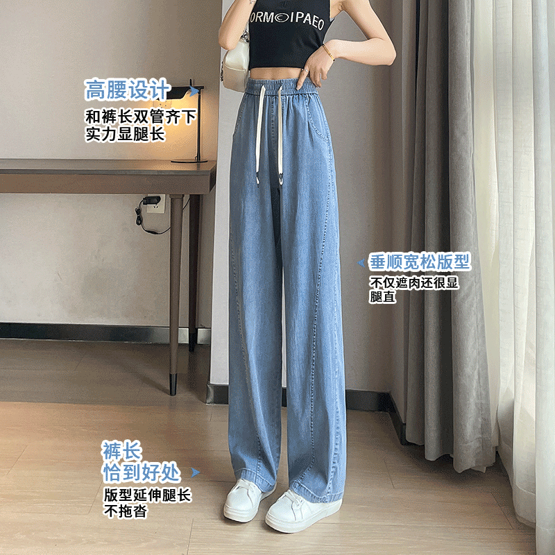 Tencel jeans women’s summer thin 2024 new straight elastic waist plus size chubby girl small wide leg pants