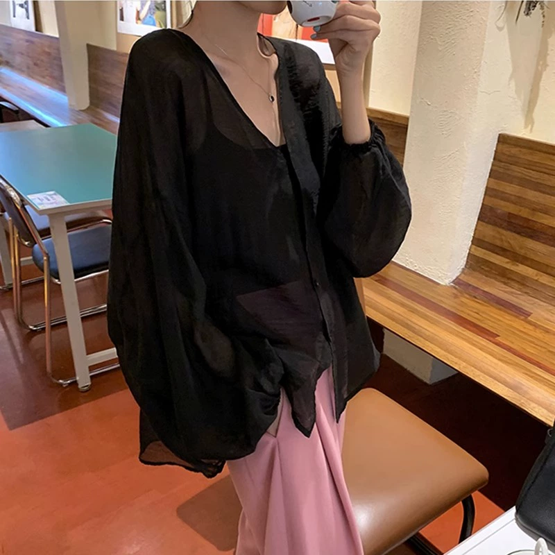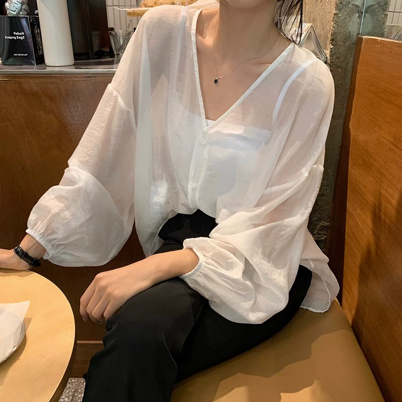 | nameOriginal | Tencel lazy style slightly see-through lantern sleeve shirt sun protection shirt |