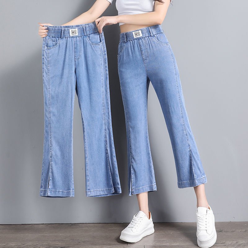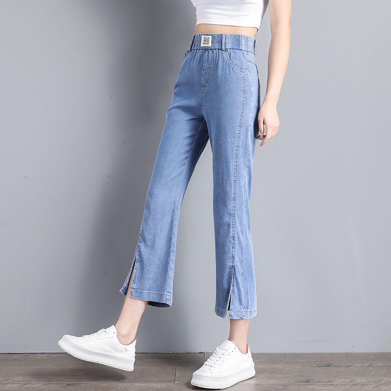 | nameOriginal | Tencel micro-jeans women's spring and summer elastic waist loose ice silk split eight-point pants short pants |