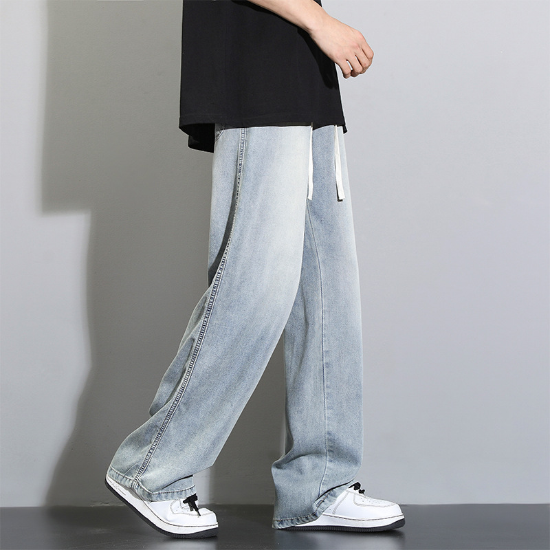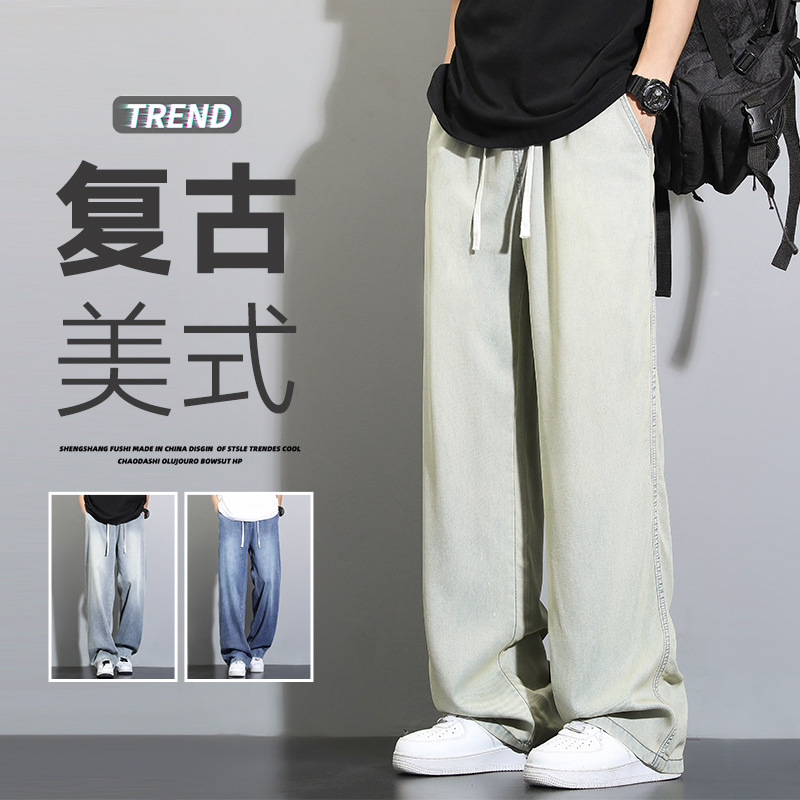 Tencel Retro Jeans Men’s 2024 Summer Thin Wide Leg Straight Pants Students American-style High Street Loose