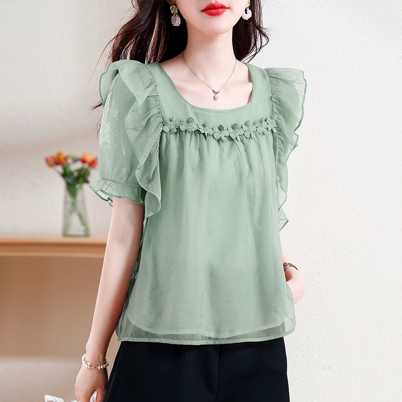 | nameOriginal | Tencel short-sleeved loose age-reducing square collar top shirt |