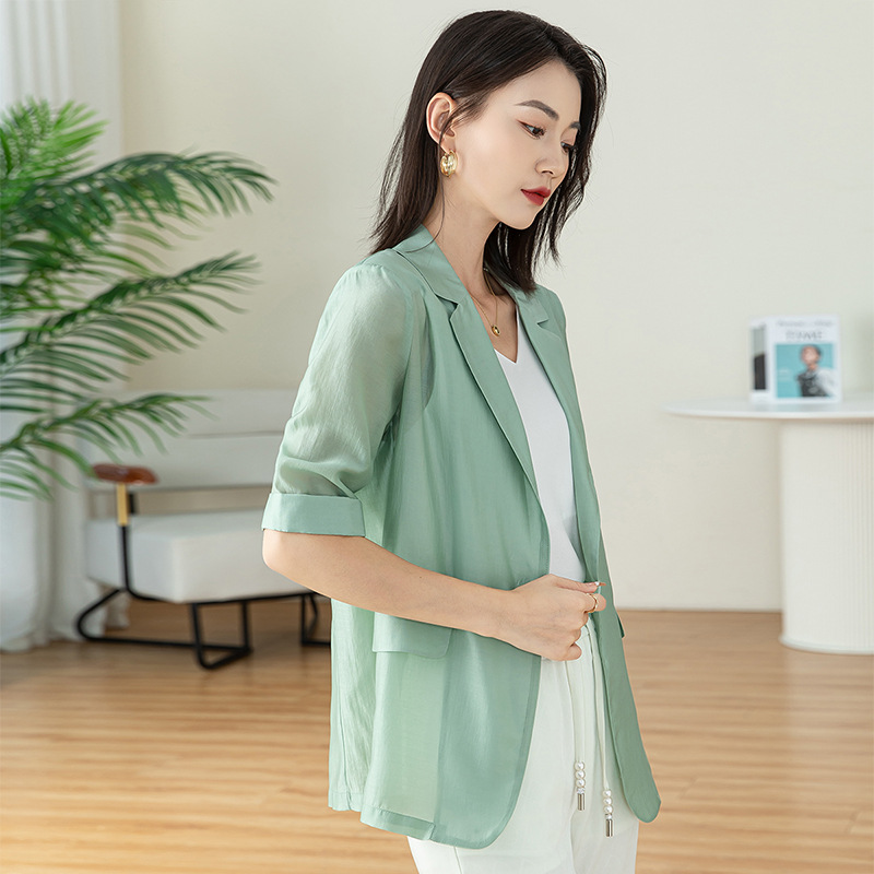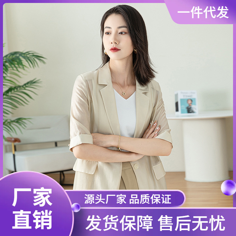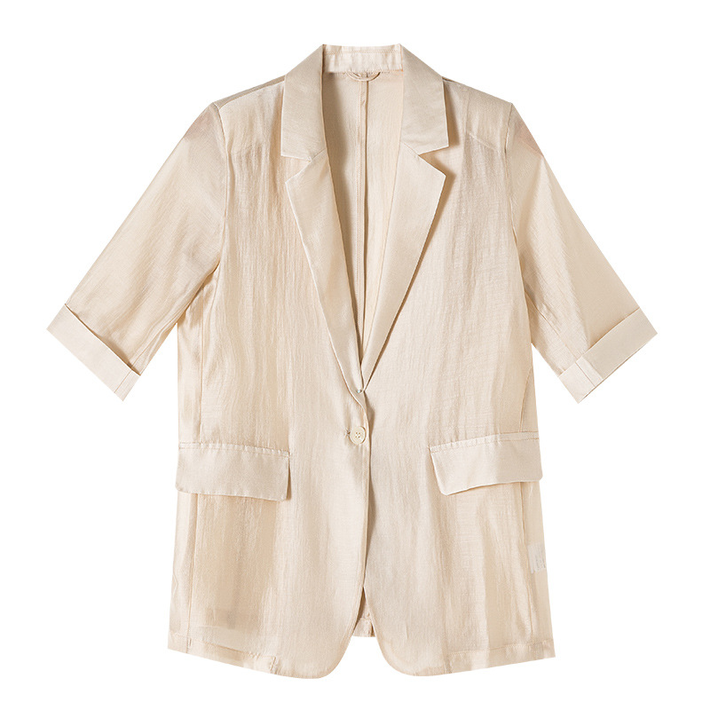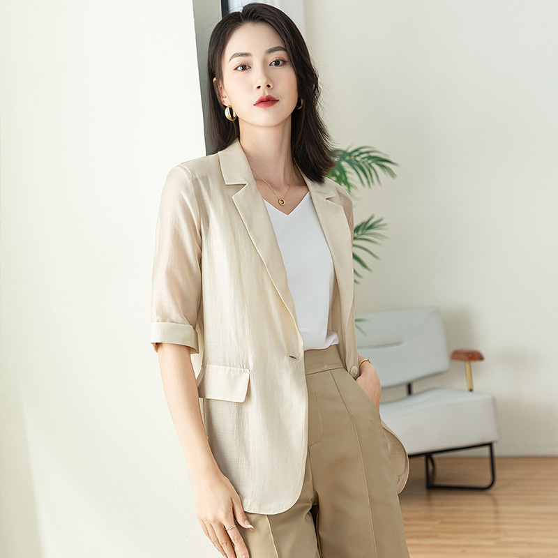 | nameOriginal | Tencel Small Suit Women's Spring and Summer New Thin Single-breasted Champagne Color Suit Collar Loose Casual Short-sleeved Suit |