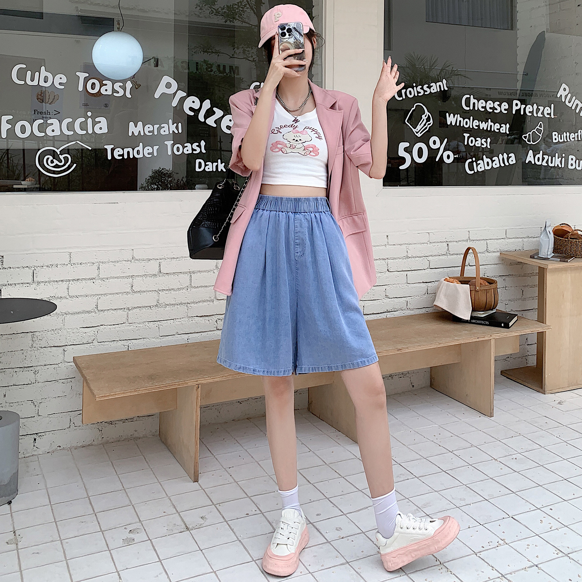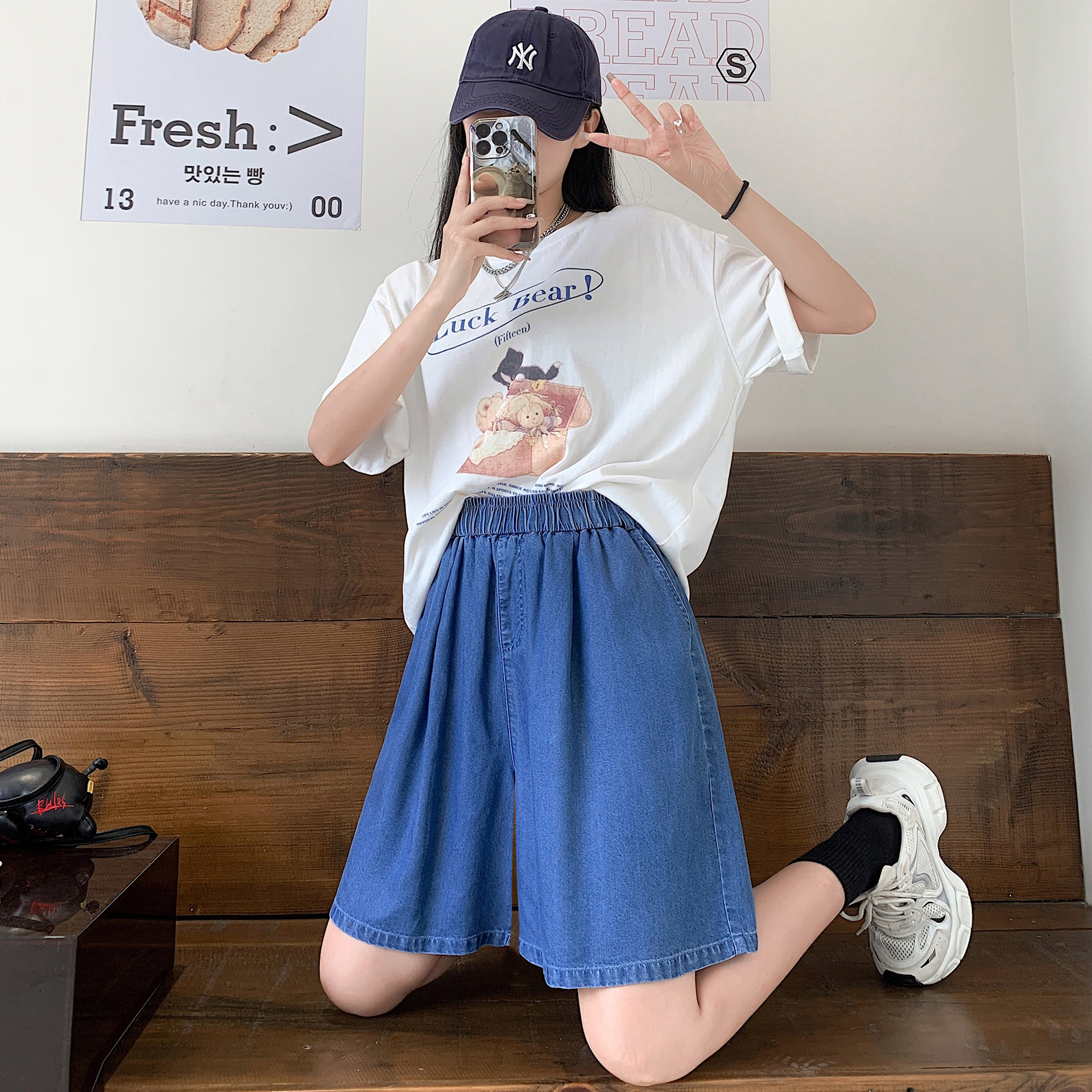 | nameOriginal | Tencel Soft Denim 2024 Summer High Waist Dipped All-match Slimming Casual Shorts Loose Wide Leg Pants |