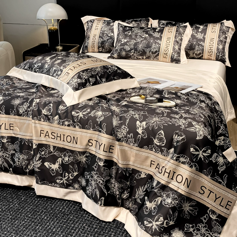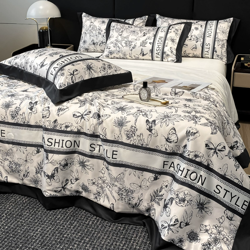 | nameOriginal | Tencel summer quilt black and white printed machine washable four-piece set |
