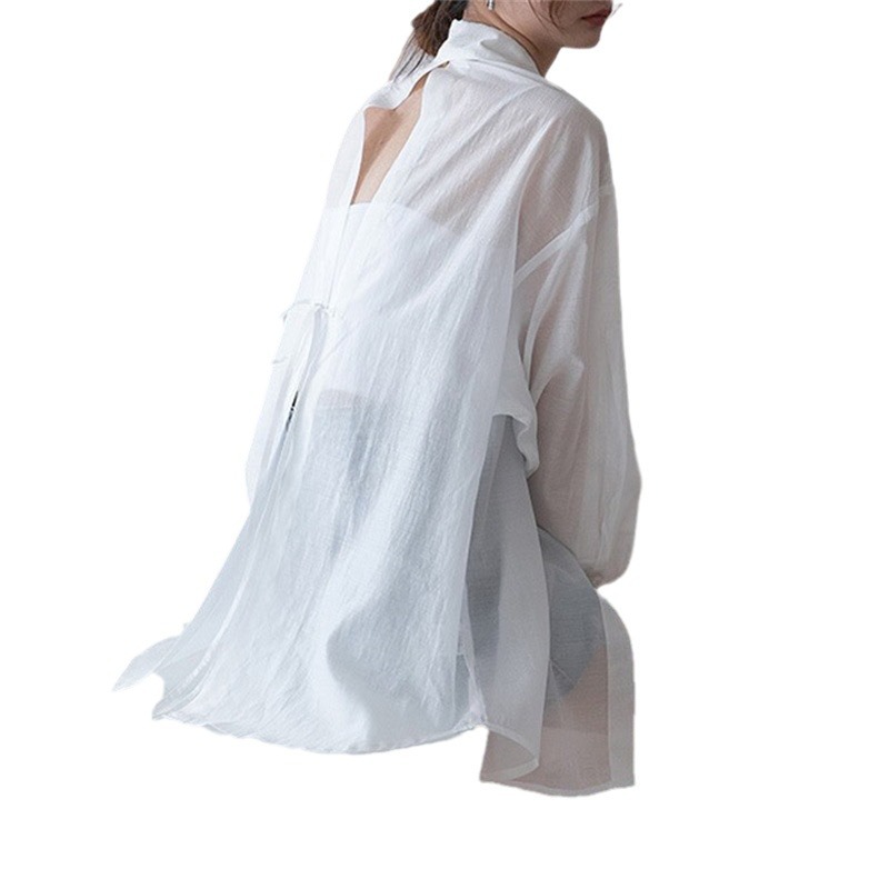 | nameOriginal | Tencel Sunscreen Shirt Women's Summer Spring 2024 New Thin Coat Design Niche Split Chiffon Top |