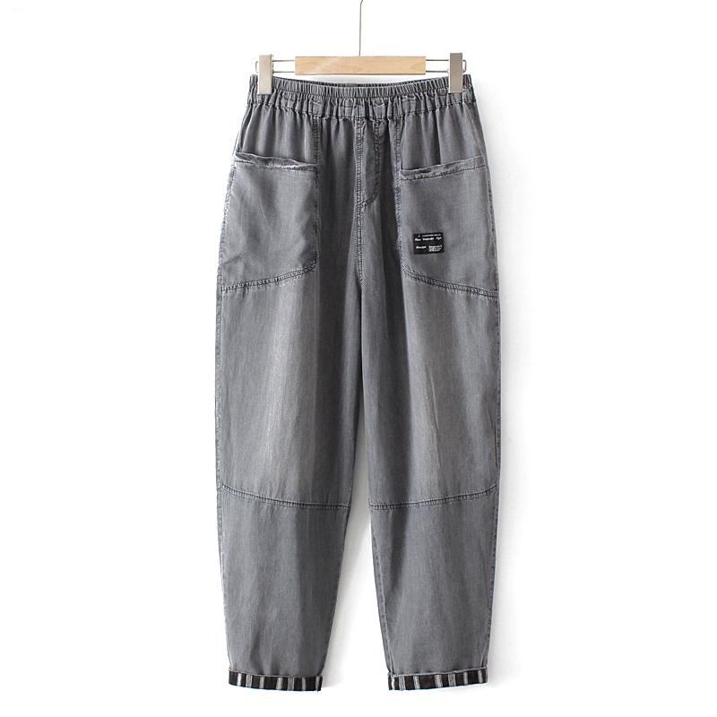 Tencel Women’s Elastic Waist Big Pocket Patch Dad Pants