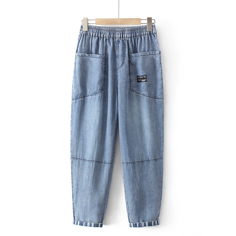 Tencel Women's Elastic Waist Big Pocket Patch Dad Pants