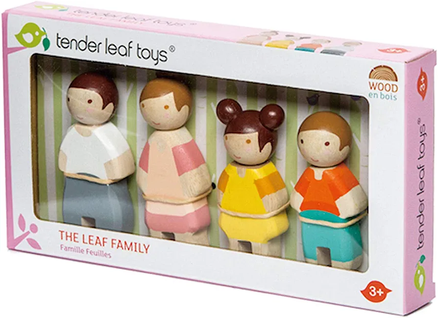 Tender Leaf Toys – The Leaf Family – Happy Wooden Family Dolls Playset Figures of 4 People for Children Kids Pretend Play Doll House
