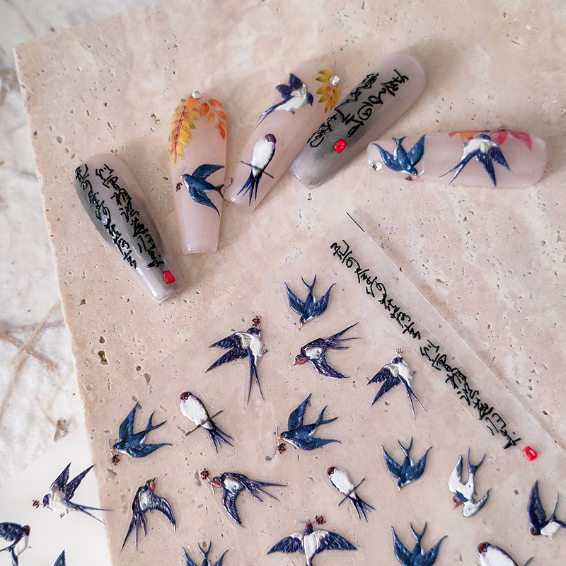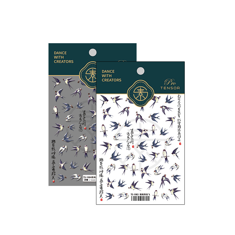 TENSOR Japanese New Technology 5D Thin Tough Nail Sticker pro Cartoon Back Glue Armor Sticker TS-1983 Micro Swift Double Fly