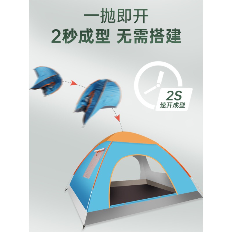 Tent Outdoor 3-4 People Fully Automatic Camping Camping Camping Outdoor Thickened Rainproof Quick Opening Folding Portable