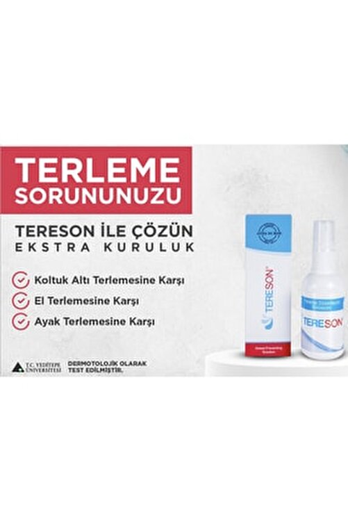 Tereson is an effective spray antiperspirant specially developed against excessive sweating. Ideal for use in armpit, foot and hand sweats. To begin with, it is used every night before bedtime. Its effect will begin to be felt the next day. It will control sweating in 1-2 days. After sweating is under control, use may be intercepted. Contents