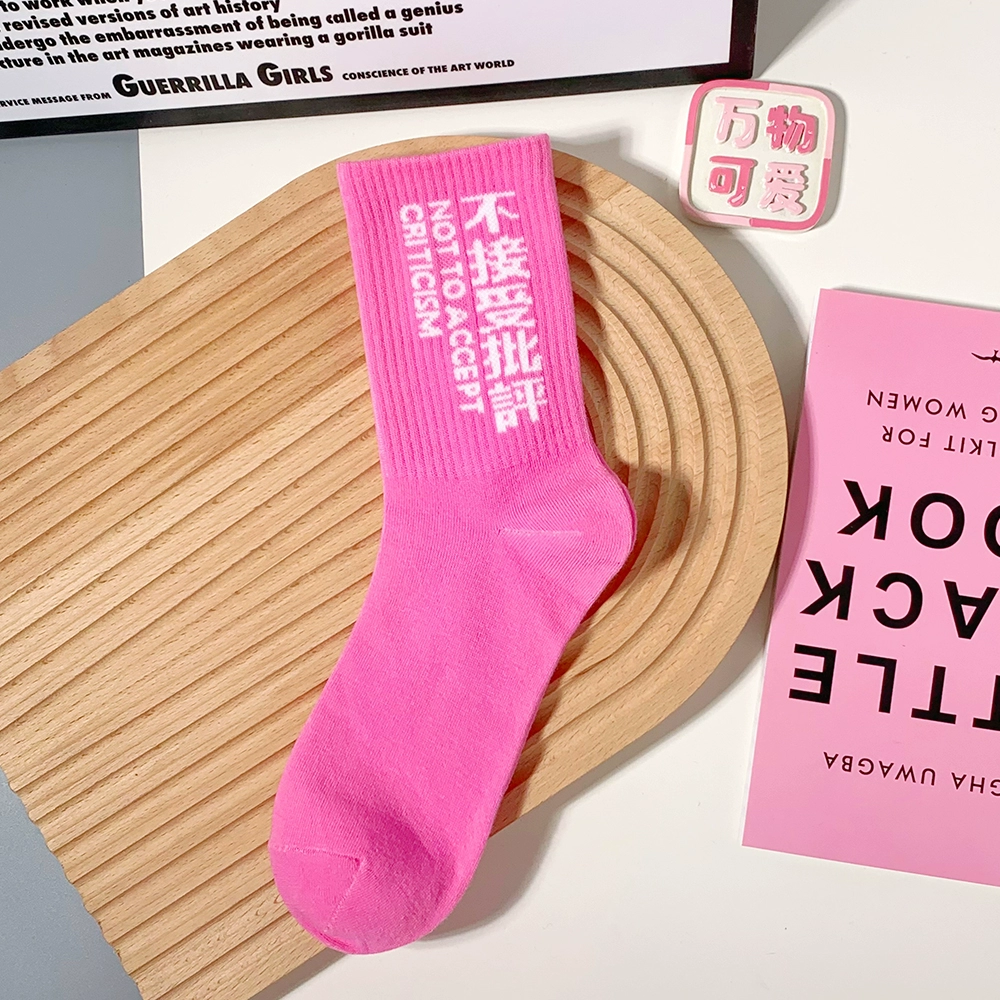 | nameOriginal | Text socks for women in mid-calf men's ins fashion rose pink Japanese style cute funny personality does not accept criticism stockings |