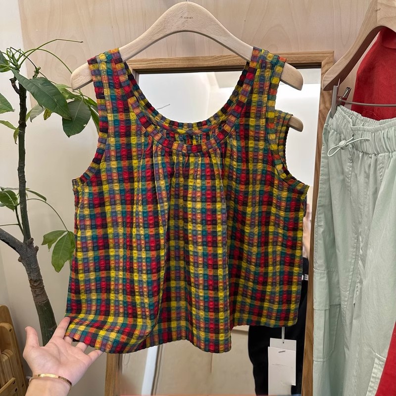 Texture Color Plaid Sleeveless Shirt Vest Women's 2024 Summer New Stylishness Age-reducing Small Inner Top