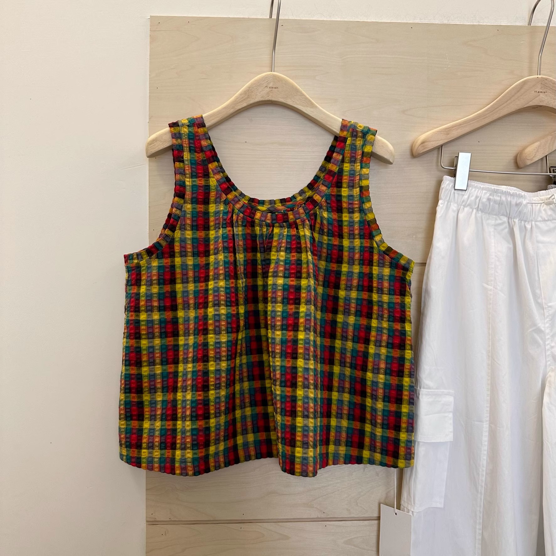 Texture Color Plaid Sleeveless Shirt Vest Women’s 2024 Summer New Stylishness Age-reducing Small Inner Top