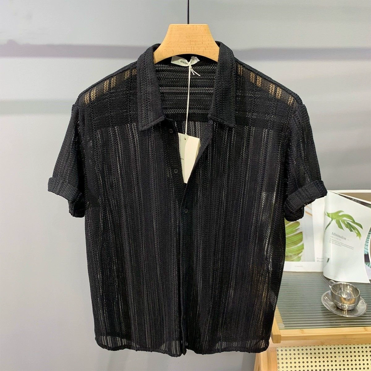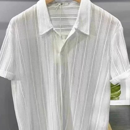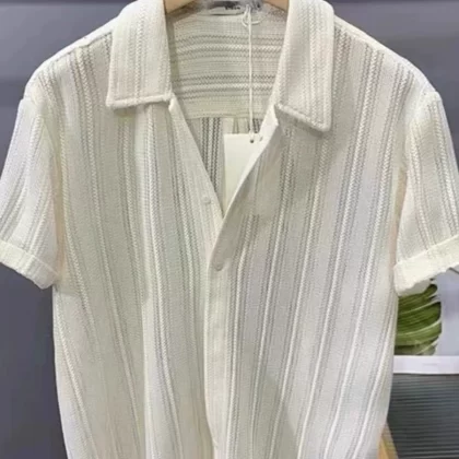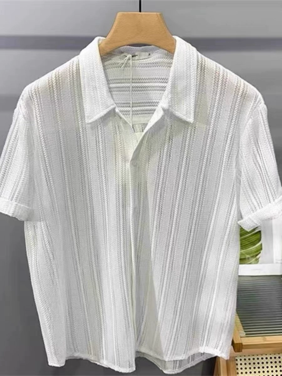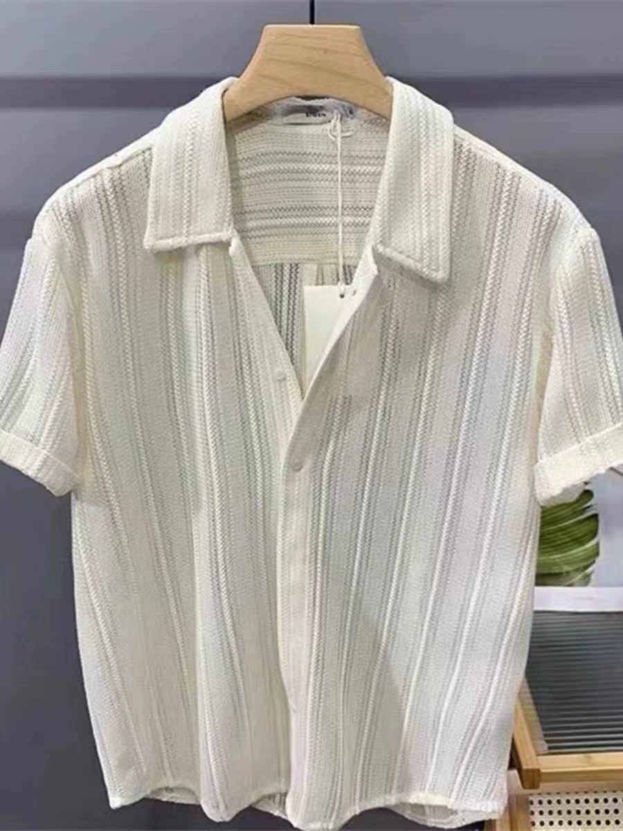 | nameOriginal | Texture design pleated texture men's short-sleeved shirt loose and iron-free drape spring and summer sun protection white light luxury high-end |