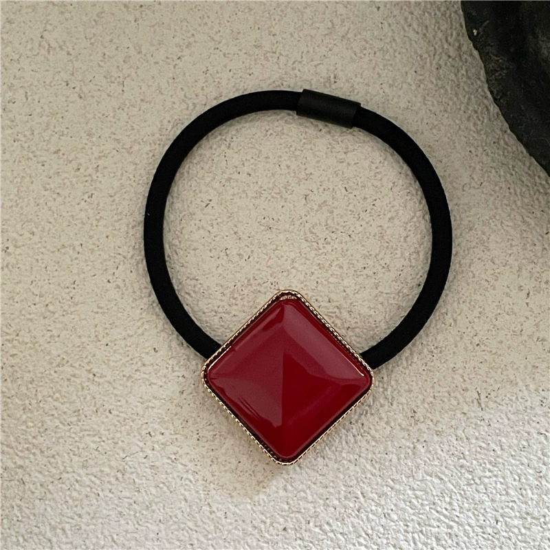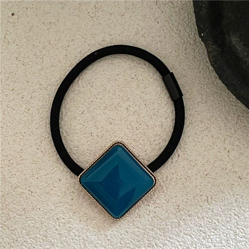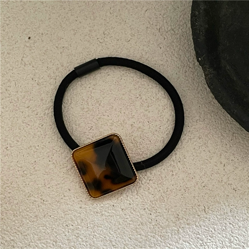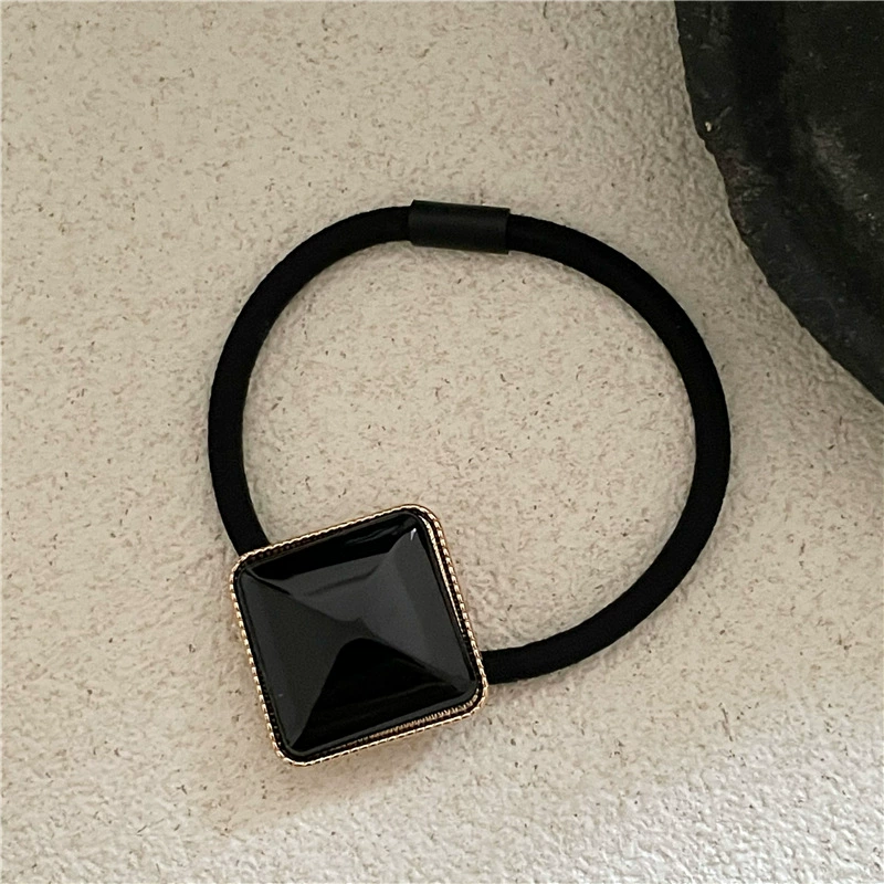 | nameOriginal | Textured acetic acid geometric square button hair tie new fashion style ponytail hair rope black basic rubber band new  |
