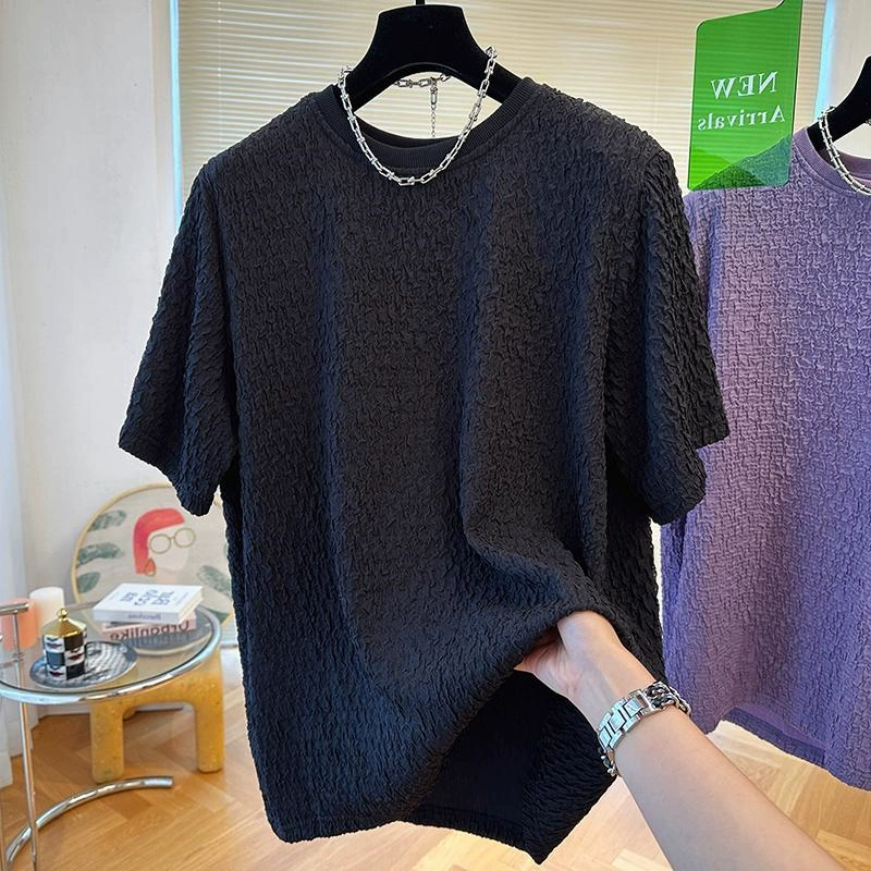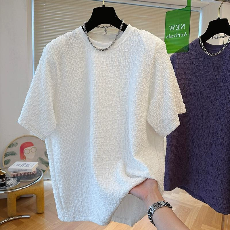 | nameOriginal | Textured casual seersucker top short-sleeved T-shirt |