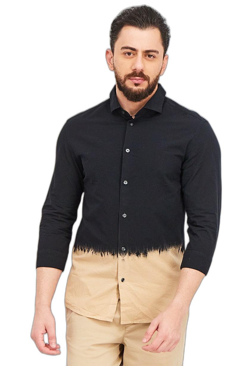 Men Clothing, Casual Shirts, men regular fit textured long sleeves causal shirts black beige