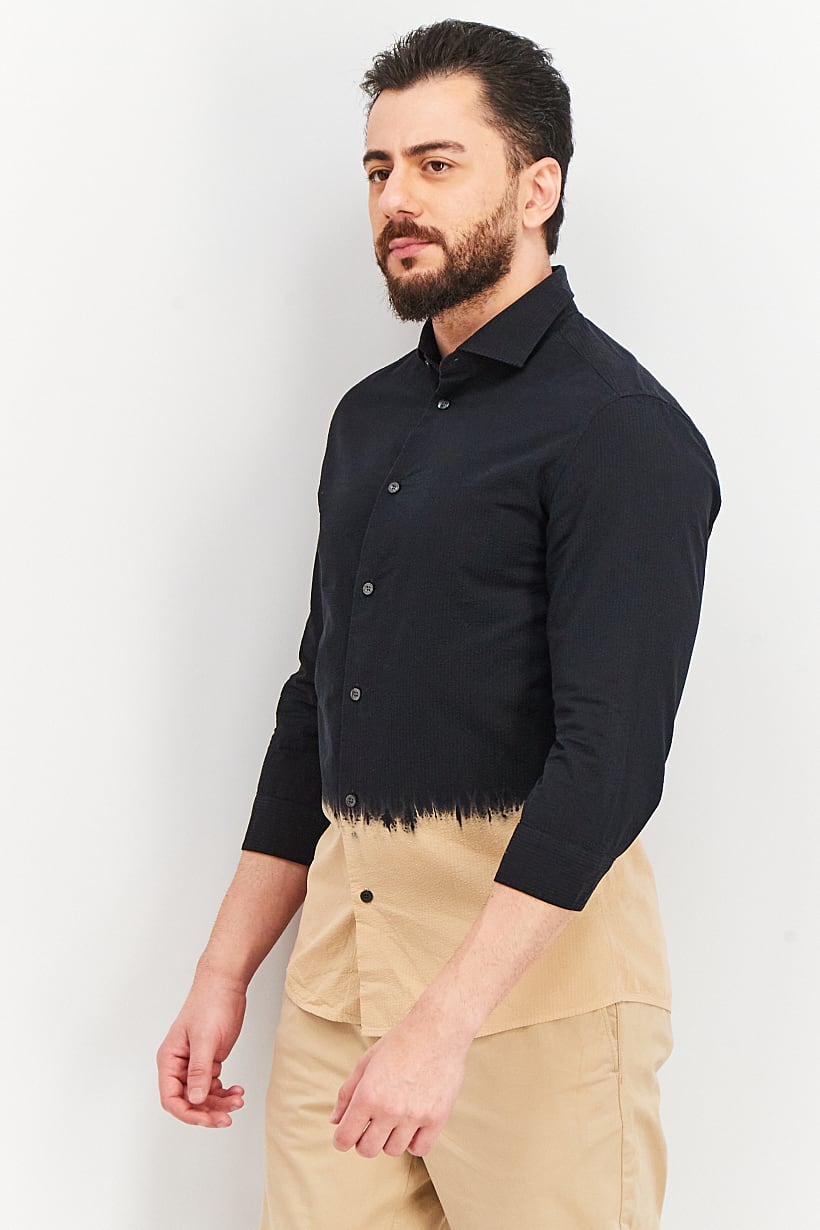 Men Regular Fit Textured Long Sleeves Causal Shirts, Black/Beige