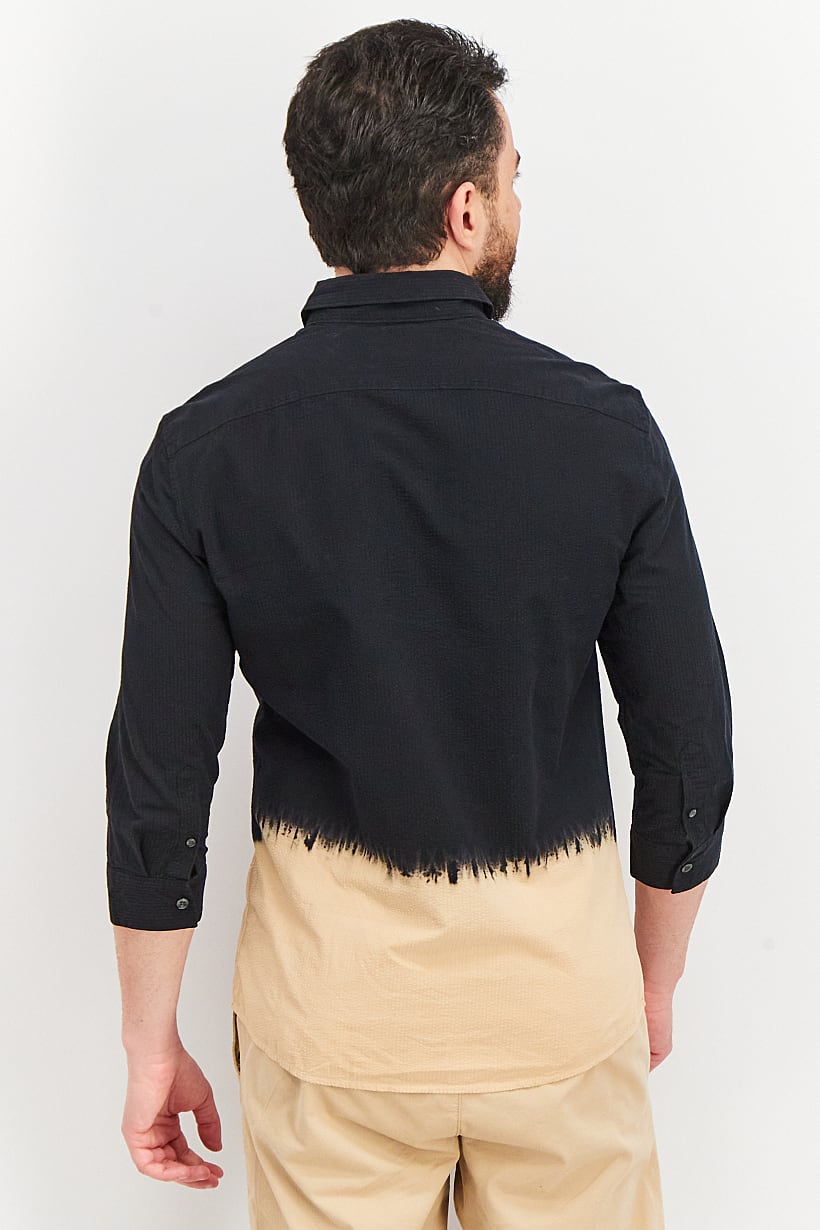 Care : Hand wash, Fit : Regular fit, Size shown : International, Sleeve Length : Long Sleeve, Types of Hem : Straight hem, Types of Neckline & Collar : Spread collar , Disclaimer : Product color may slightly vary due to photographic lighting sources or your monitor settings., Fabrics : 100% Cotton, Occasion : Casual, Pattern & Print : Textured pattern, Types of Closures : Button, Color Family : Black, Beige,
