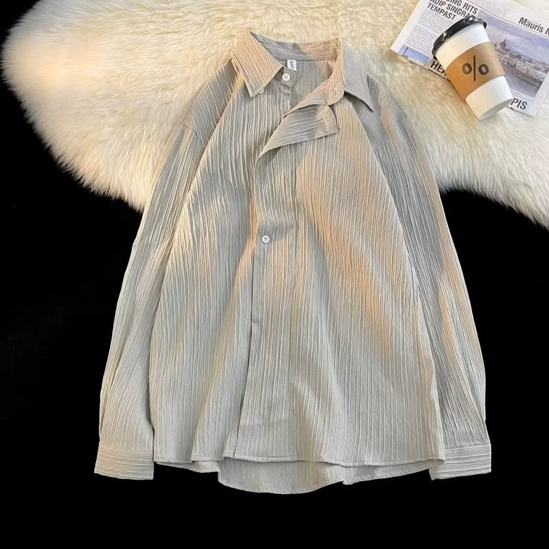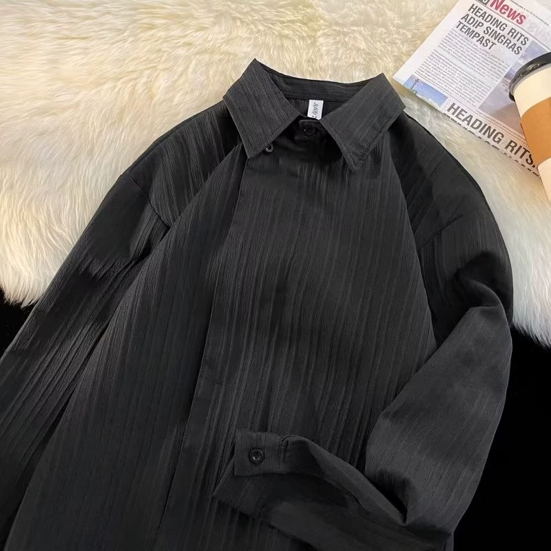 | nameOriginal | Textured pleated draped early autumn men's long-sleeved shirt |