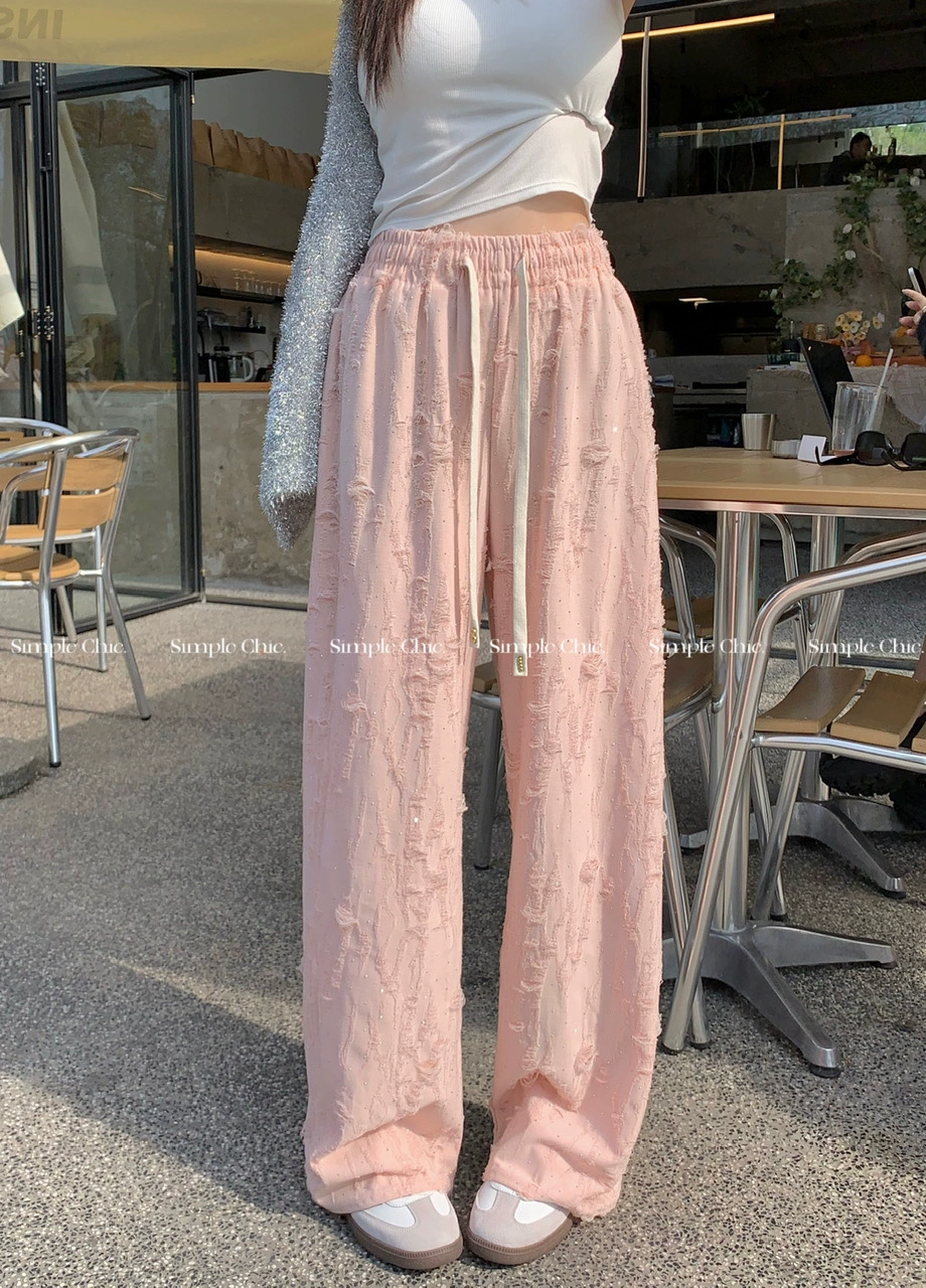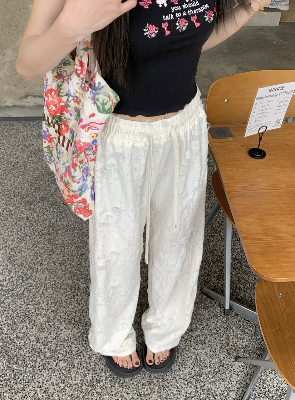 | nameOriginal | Textured white loose and versatile slimming high-waisted casual pants |
