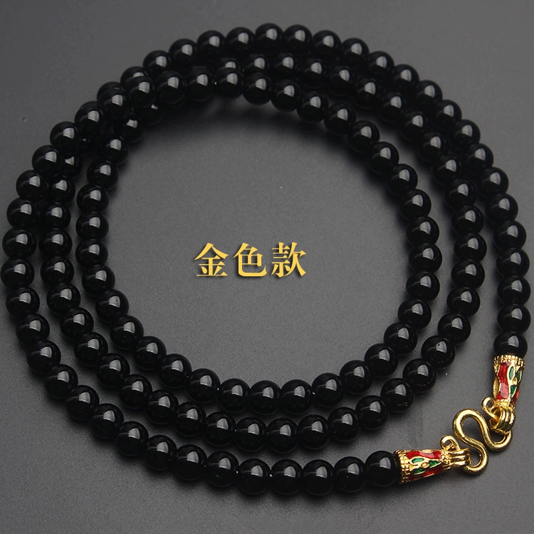 | nameOriginal | Thai Buddha amulet chain simple solid color black agate men's and women's round beads gold silver |