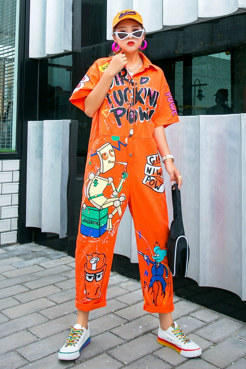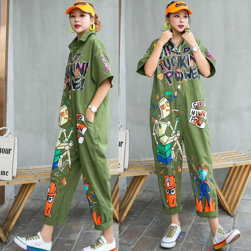 | nameOriginal | Thai fashion brand graffiti print hip-hop style loose jumpsuit |