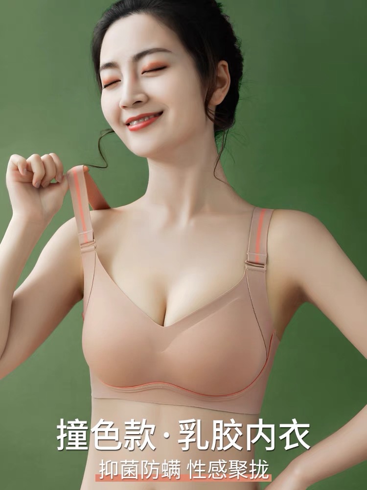 Thai Latex Underwear Women’s Sling Beautiful Back Adjustable Push-Up Bra No-Rings Collator Breast Bra