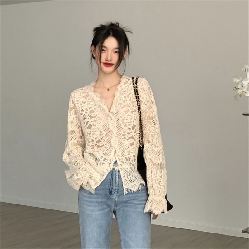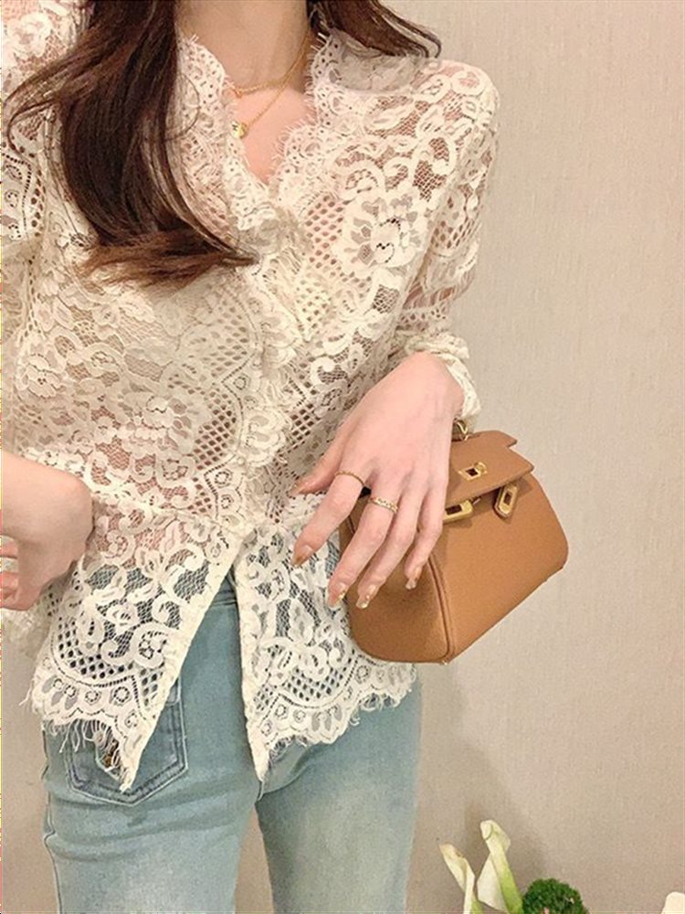 Thai Niche Top Spring and Autumn Beautiful Shirt Women's High-end Western-style Hollow Embroidered Lace Shirt Women's Design Sense
