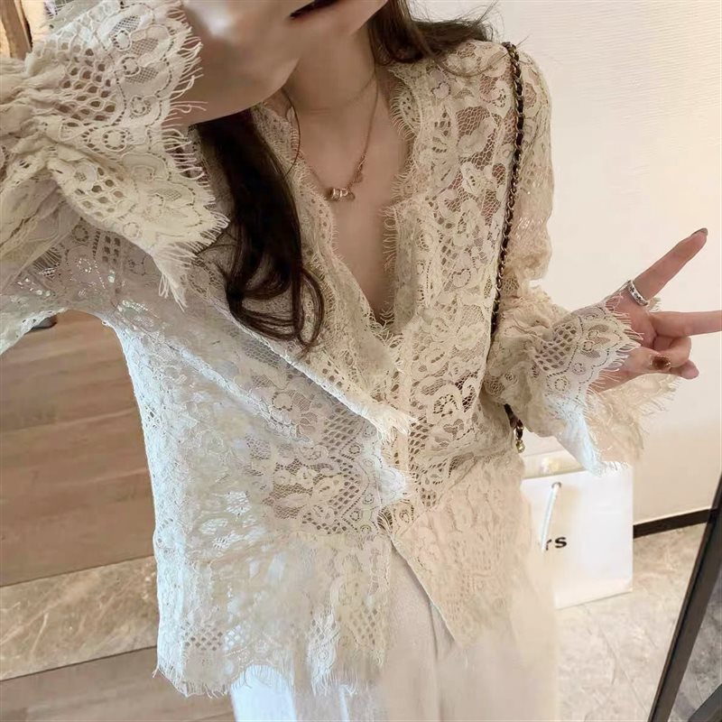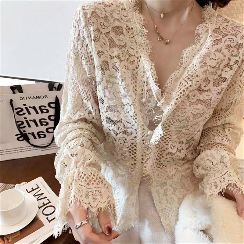 Thai Niche Top Spring and Autumn Beautiful Shirt Women’s High-end Western-style Hollow Embroidered Lace Shirt Women’s Design Sense