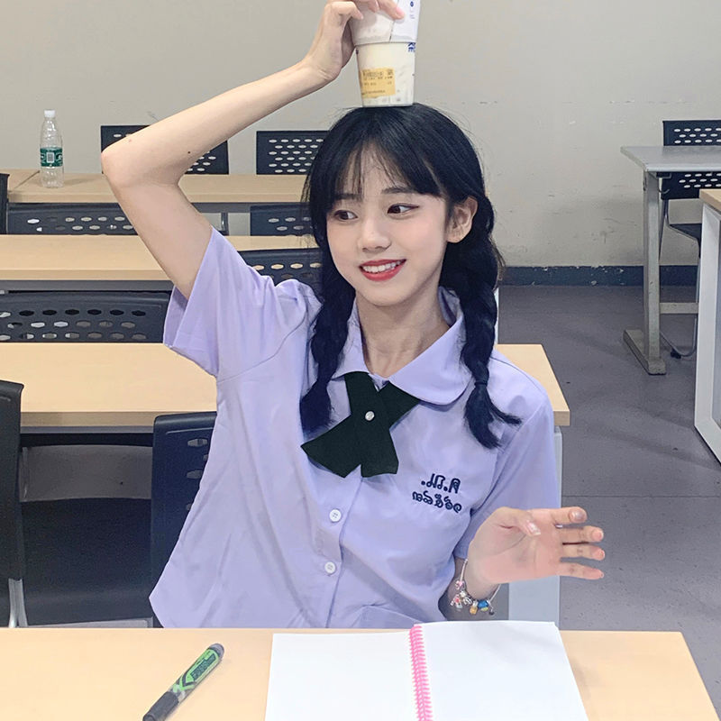 | nameOriginal | Thai school uniform Thai jk shirt attached to high school style uniform spring short sleeve students graduation sports class suit |