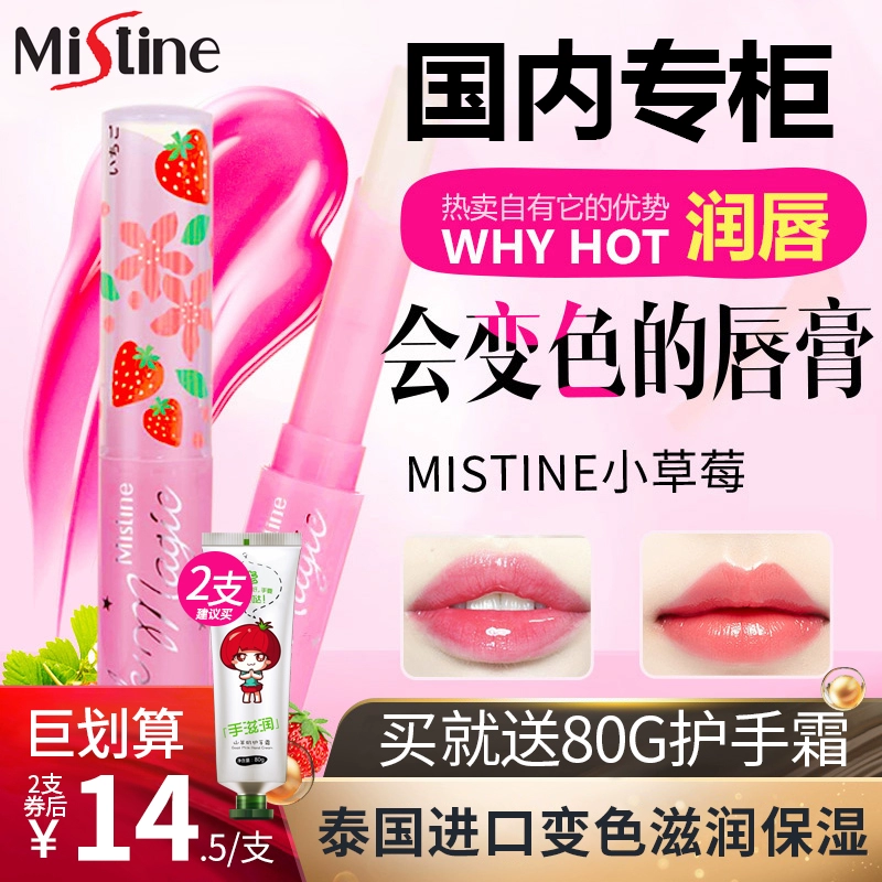| nameOriginal | Thai strawberry color-changing lipstick MISTINE lip balm lipstick does not fade, moisturizing, moisturizing and hydrating women's genuine |