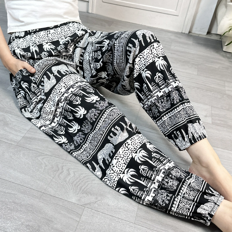 | nameOriginal | Thai Yoga Lantern Pants Women's Summer Bohemian Loose Artificial Cotton Silk Wide Leg Elephant Flower Beach Pants |