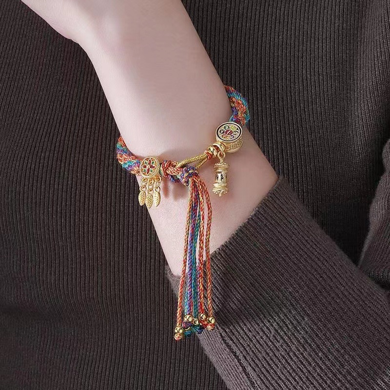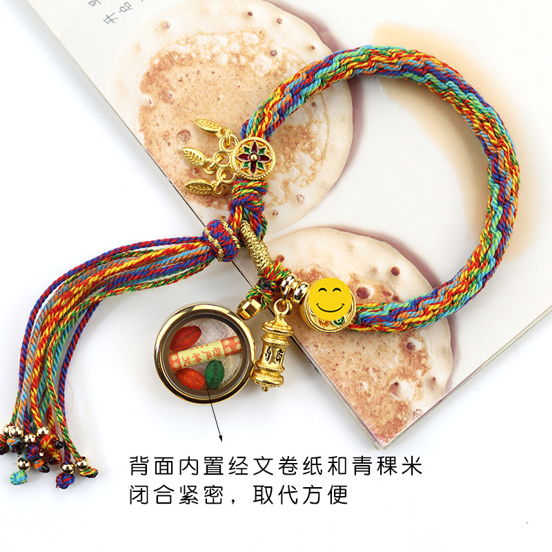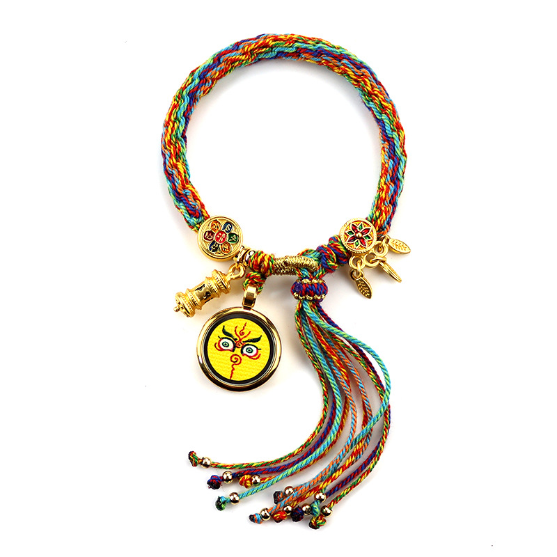 | nameOriginal | Thangka Tibetan hand rope hand rub cotton rope woven bracelet five-way God of Wealth eye zachilam Green mother literary beads thangka |