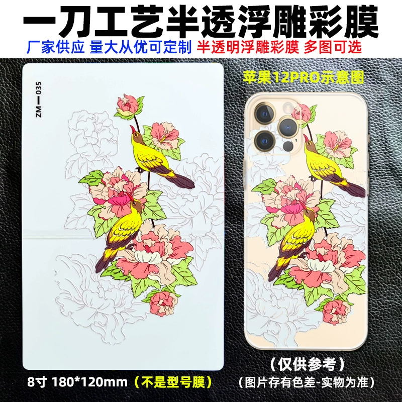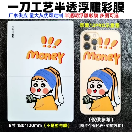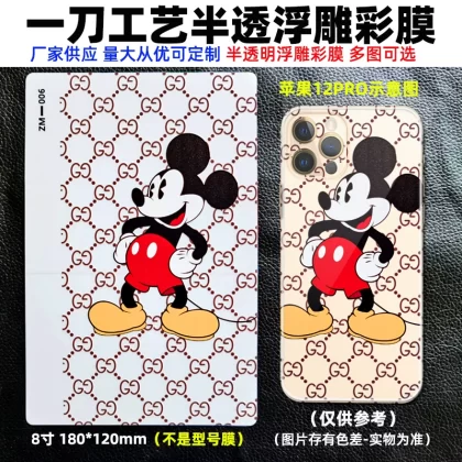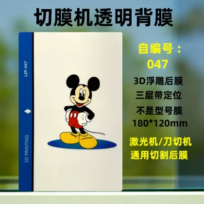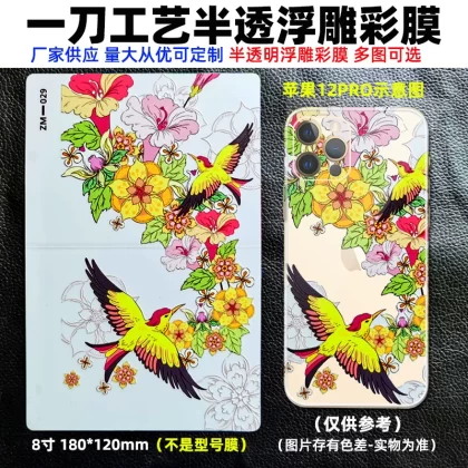 | nameOriginal | The best-selling 8-inch transparent 3D embossed mobile phone back film cutting machine has three layers of color film on the back with positioning for easy application of the film. Cartoon back film can be changed as you like, with a variety of personalized patterns to choose from. |
